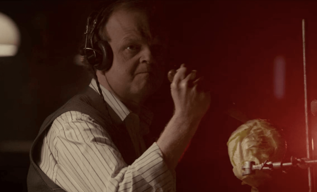 One of my favorite examples of this is Peter Strickland’s Berberian Sound Studio (2012). The main character, Gilderoy, is a sound engineer who gets duped into working on giallo-style film in Italy called The Equestrian Vortex. Having never worked on a horror film before, Gilderoy becomes increasingly more disturbed by the violence in the film and the lines between his work and reality become… blurred. A lot of the film is spent highlighting the technical aspects of sound mixing, even when we start to experience Gilderoy’s fractured reality. The way the movie utilizes sound acts as both a premise and the primary source of tension throughout the film. Extended scenes of foley artists using produce to create gruesome sound effects serve as a constant reminder to us that this isn’t real, but as Gilderoy’s experience becomes increasingly more distorted, things begin to feel jumbled for the viewer too. If we know this isn’t real, why do we still feel so uneasy? That unease is the film’s greatest strength and most impressive trick. Even though we are watching Gilderoy and his crew smashing watermelons and ripping cabbage to produce sound effects, our brains still register the squelching and tearing sounds as violence and gore. Strickland leans into this tension, showing how easily fear and perception can override logic and rational understanding. Strickland provides the sound and lets our brains fill in the rest.